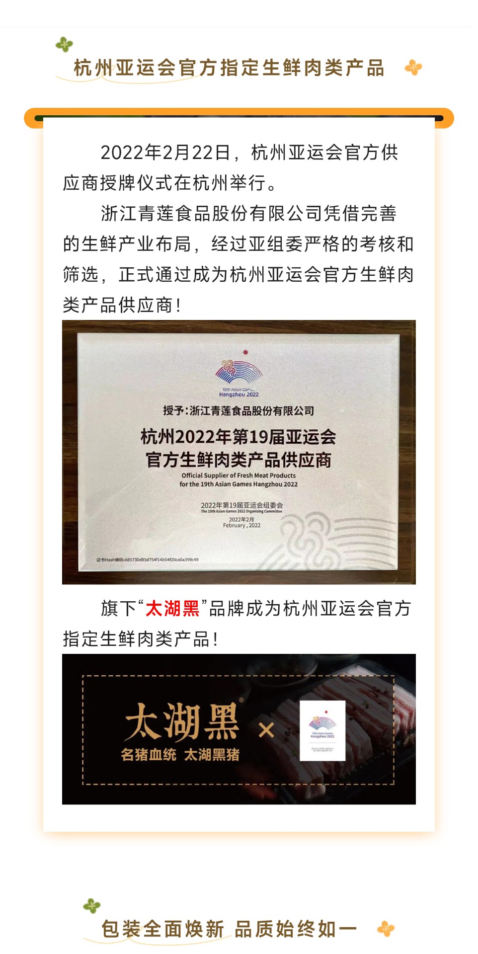 品優脂黑豬 賽亞運風采|太湖黑包裝全面煥新,上盒馬即可品嘗運動員同款豬肉!